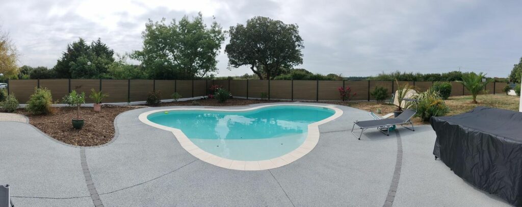Un béton décoratif et antidérapant a été réalisé pour cette belle piscine près de Challans.